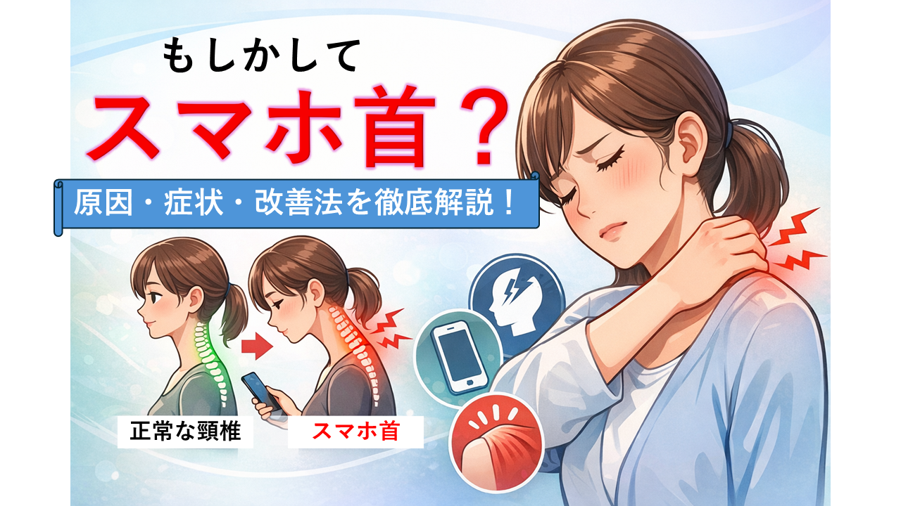 「首や肩がこる」「頭痛が増えた」「姿勢が悪くなった気がする」…それ、スマホ首(ストレートネック)かもしれません。 スマホやPCを下向きで見続ける姿勢が続くと、首に負担が集中し、慢性的な不調の原因になります。
